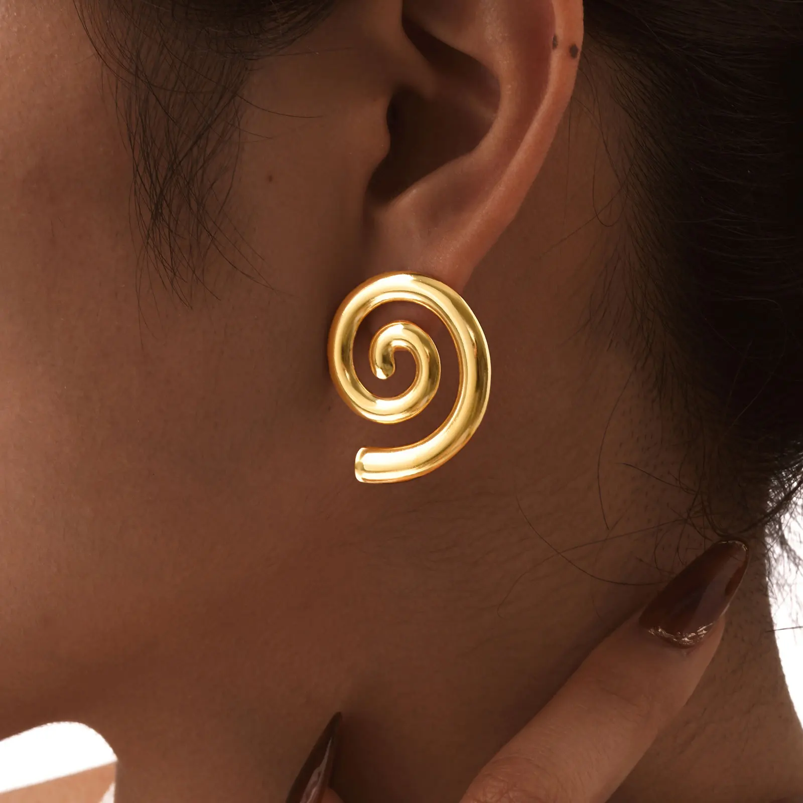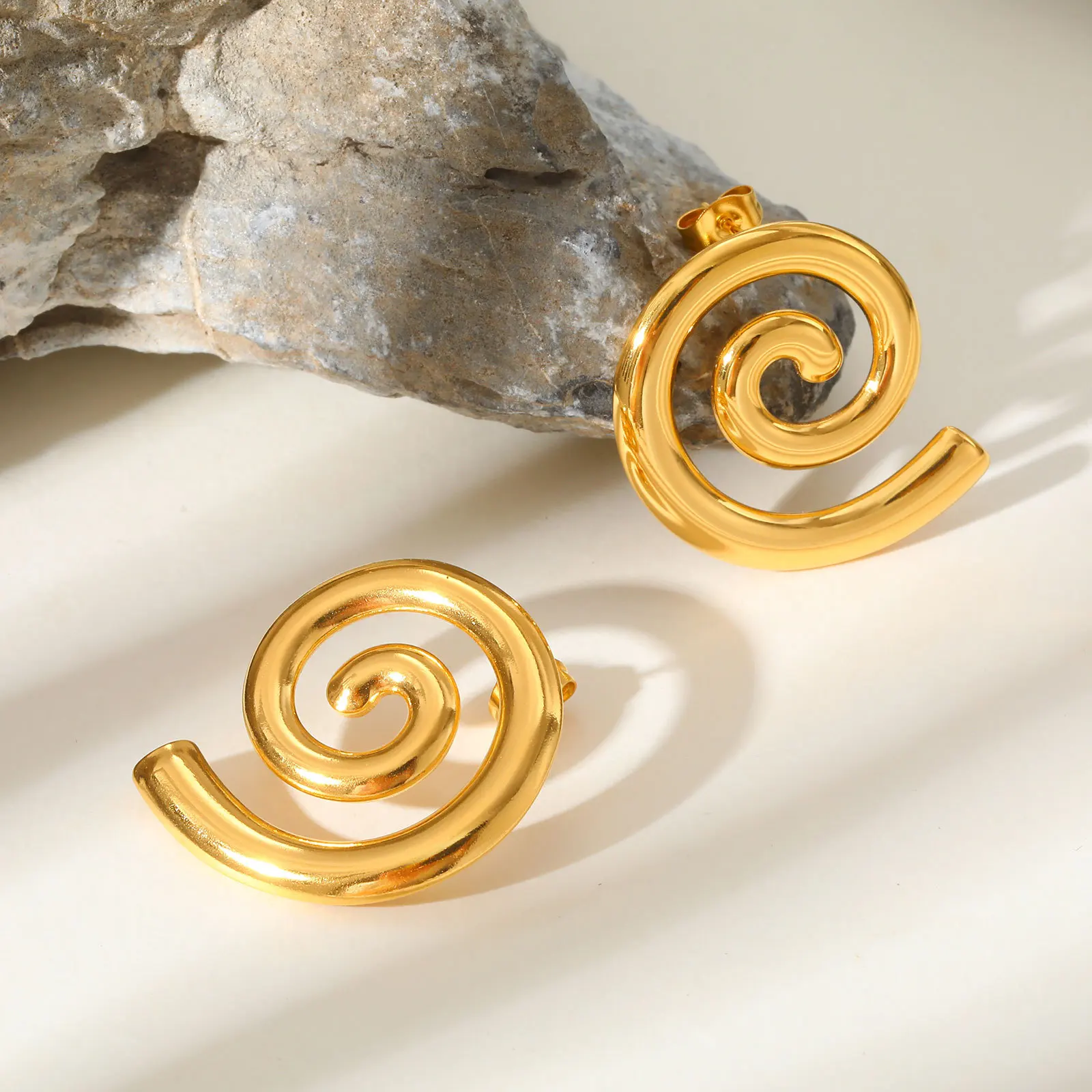 Ins Style Waterproof Hypoallergenic Jewelry Geometric Spiral Stud Earring Stainless Steel Gold Plated Circle Earrings for Women